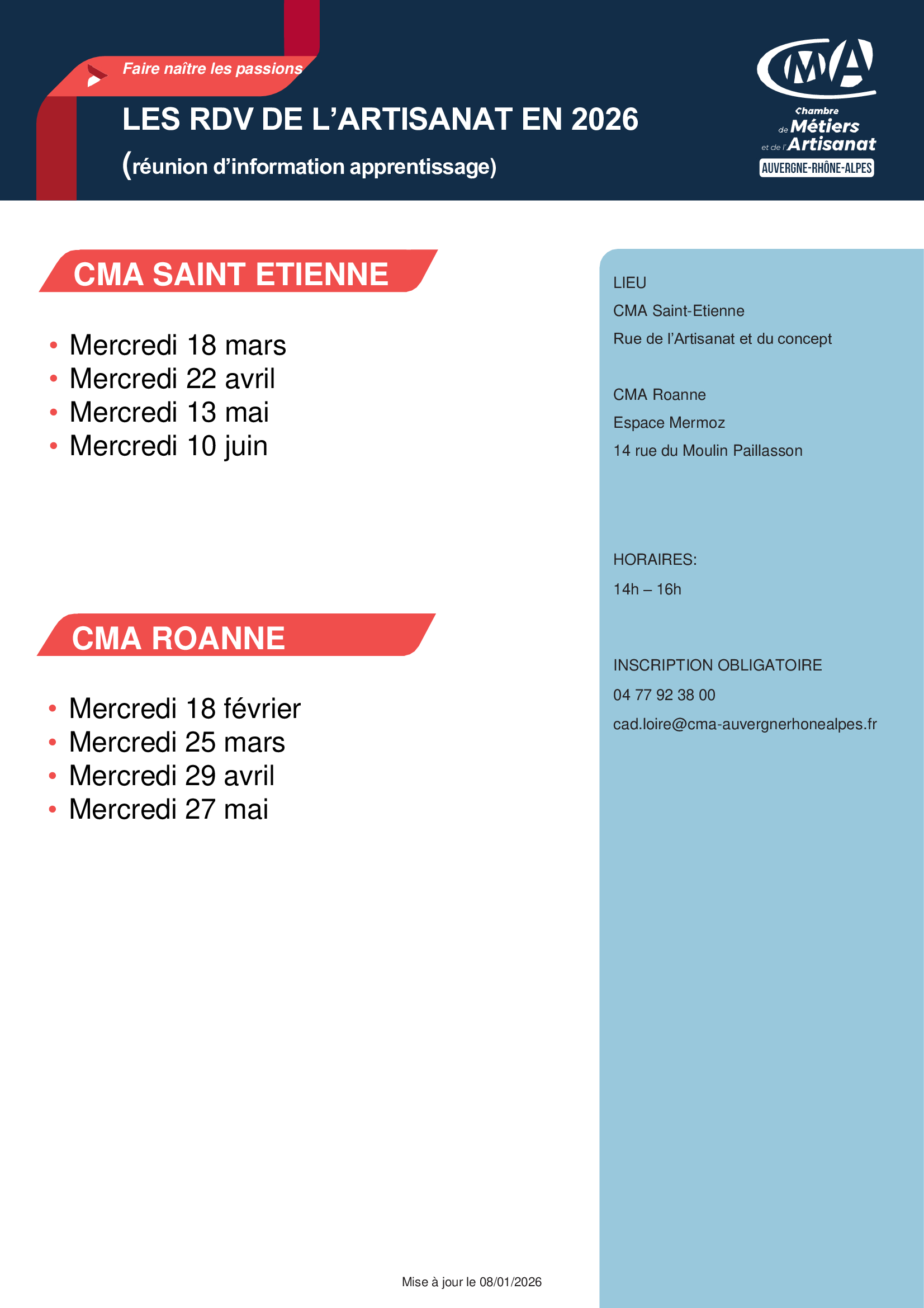 LES RDV DE L’ ARTISANAT EN 2026 (réunion d’information apprentissage)